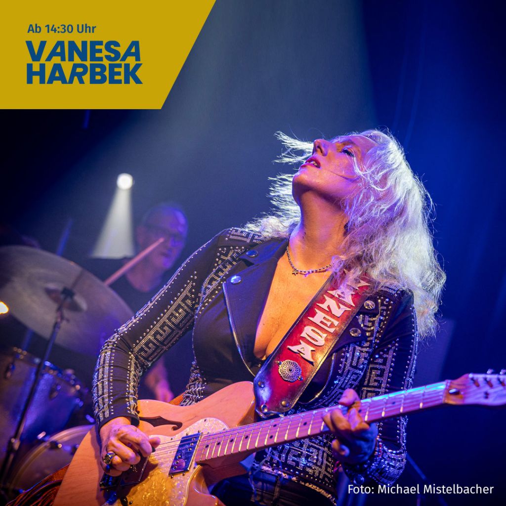 Ab circa 14:30 Uhr erwartet die Zuhörer der beindruckende Sound der Argentinierin Vanesa Harbek. Blues, Soul, Tango, Jazz und Latin sind die Stile der talentierten Sängerin und Gitarristin. Sie hat eine vielseitige und kraftvolle Stimme und bewegt sich elegant in verschiedenen musikalischen Stilrichtungen mit einem natürlichen Talent für die Gitarre. Willkommen in der beeindruckenden musikalischen Welt von Vanesa Harbek, einer herausragenden Künstlerin, die als der „weibliche Carlos Santana“ bekannt ist. Ihre Musik, eine meisterhafte Mischung aus traditionellem Blues und Soul, gewürzt mit Tango und Latin Elementen, hat ihr einen festen Platz in den Herzen der Musikliebhaber weltweit verschafft. Vanesa Harbek besitzt die seltene Fähigkeit mit ihrer Band ihre tiefen musikalischen Wurzeln mit einer charmanten Frische zu kombinieren, die ihrer Musik eine sowohl zeitlose als auch moderne Aura verleiht. Die Argentinierin nimmt ihre Zuhörer mit auf eine Reise durch ihr Leben und ihre Seele.